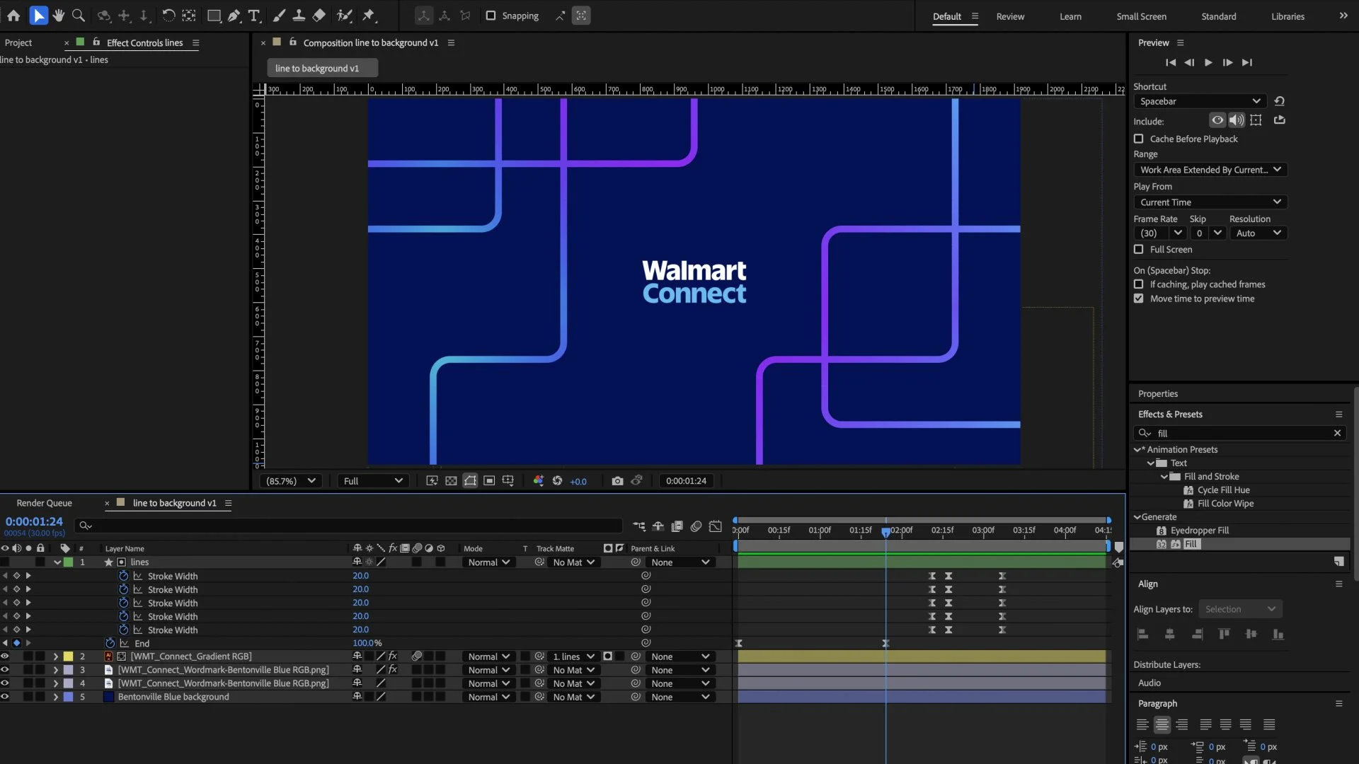 This transition pack was created using the six Walmart Connect brand colors. The rounded rectangle shapes are consistent with the company’s visual brand guide. Each color’s rectangle size was determined by the usage of the respective color in the Walmart Connect brand. Each individual rectangle has the same ease curve as the others, but with a timed offset. The transitions below are just one of many examples of transition packs that I created for Walmart Connect.