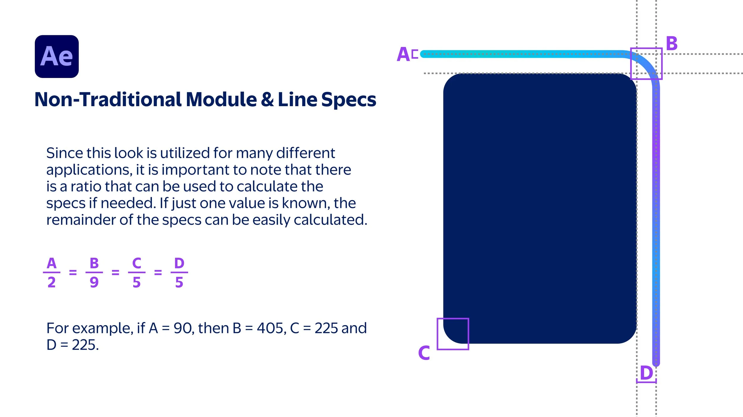 I created these guides for the team to reference when creating animated videos. Because the values change depending on the width of the composition in After Effects, these guidelines help the team to quickly create on-brand motion assets without having to run the calculations every time.